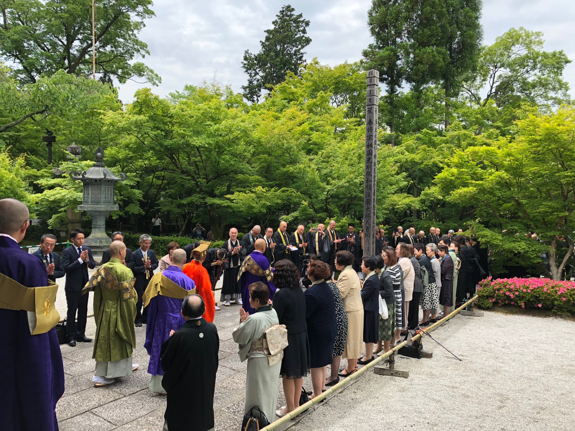 去る5月28日。総本山永観堂、中西玄禮管長の退山式が行われました。約8年間の長きにわたって、私たちを教え導いていただきました。大殿での法要の後、諸堂を参拝され、たくさんの僧侶や寺庭婦人、そして、永観堂幼稚園児たちに見送られながら、永観堂を後にされました。