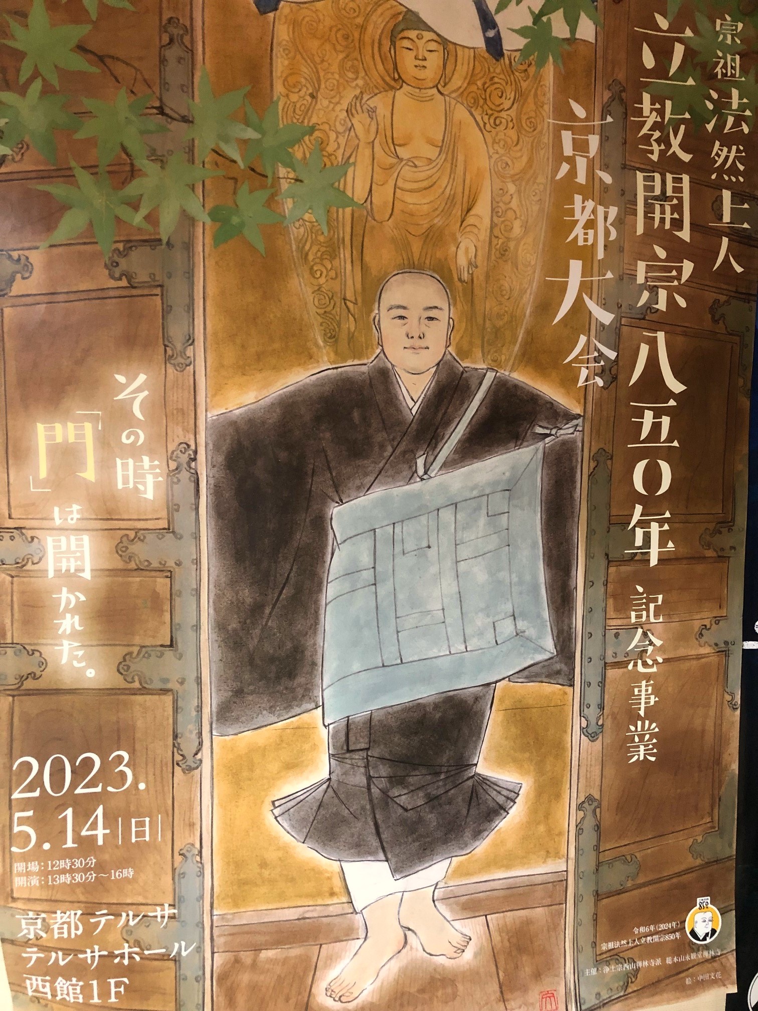 先日、京都テルサにおいて、記念事業の京都大会が行われ、当寺の檀家役員さんもお越しいただきました。法話、記念法要、講談師による法然上人の半生、佛讃歌など、盛りだくさんの内容の大会となりました。私も、法要部の一員として記念法要に参加しました。いよいよ来年は記念の年です。令和6年4月21日~27日、総本山永観堂禅林寺において、開宗850年慶讃法要が厳修されます。